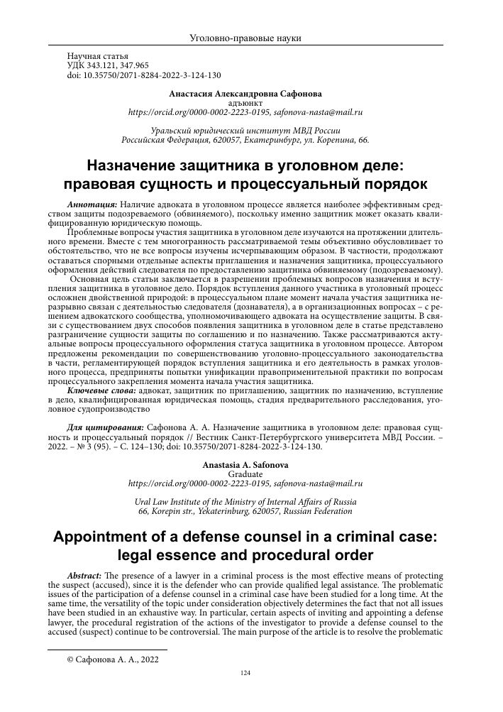 Назначение адвокатов для защиты